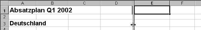 Vier Bereiche darstellen: Wenn Sie den Zellzeiger nicht in Zeile 1 und Spalte A platzieren, erscheint jeweils ein Trennbalken links und oberhalb der aktiven Zelle. |