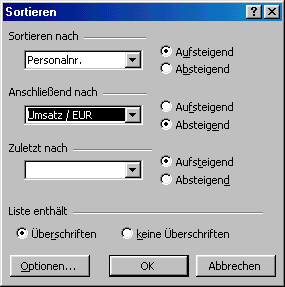 – Sortieren..., um das entsprechende Fenster zu öffnen. Wenn Sie die