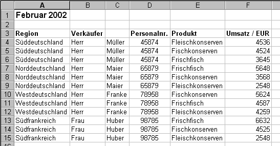 Abb. 4- 67 : Die Verkaufsstatistik wurde zuerst nach der Personalnr. aufsteigend und anschließend nach dem Umsatz absteigend sortiert.