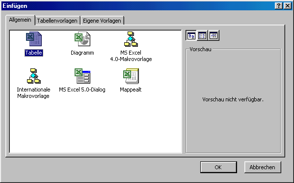 Abb. 4- 53 : Einfügen einer weiteren Tabelle oder eines anderen Excel-Objekts