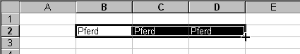 Abb. 4. 57 : Kopieren mit Hilfe des Anfassers, der sich unten rechts am Zellcursor bzw. an einem Zellbereich befindet. Wenn der Cursor zu einem schwarzen Kreuz wird, müssen Sie die linke Maustaste drücken und halten. Ziehen sie die Maus dann nach rechts oder unten.